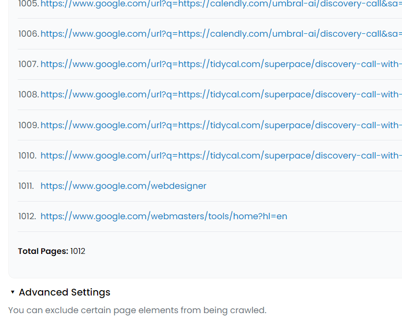 I inputed a publish google doc url and your crawlers are almost ingesting the entirety of google. See image with 1000+ pages π€― when its just a single google doc page